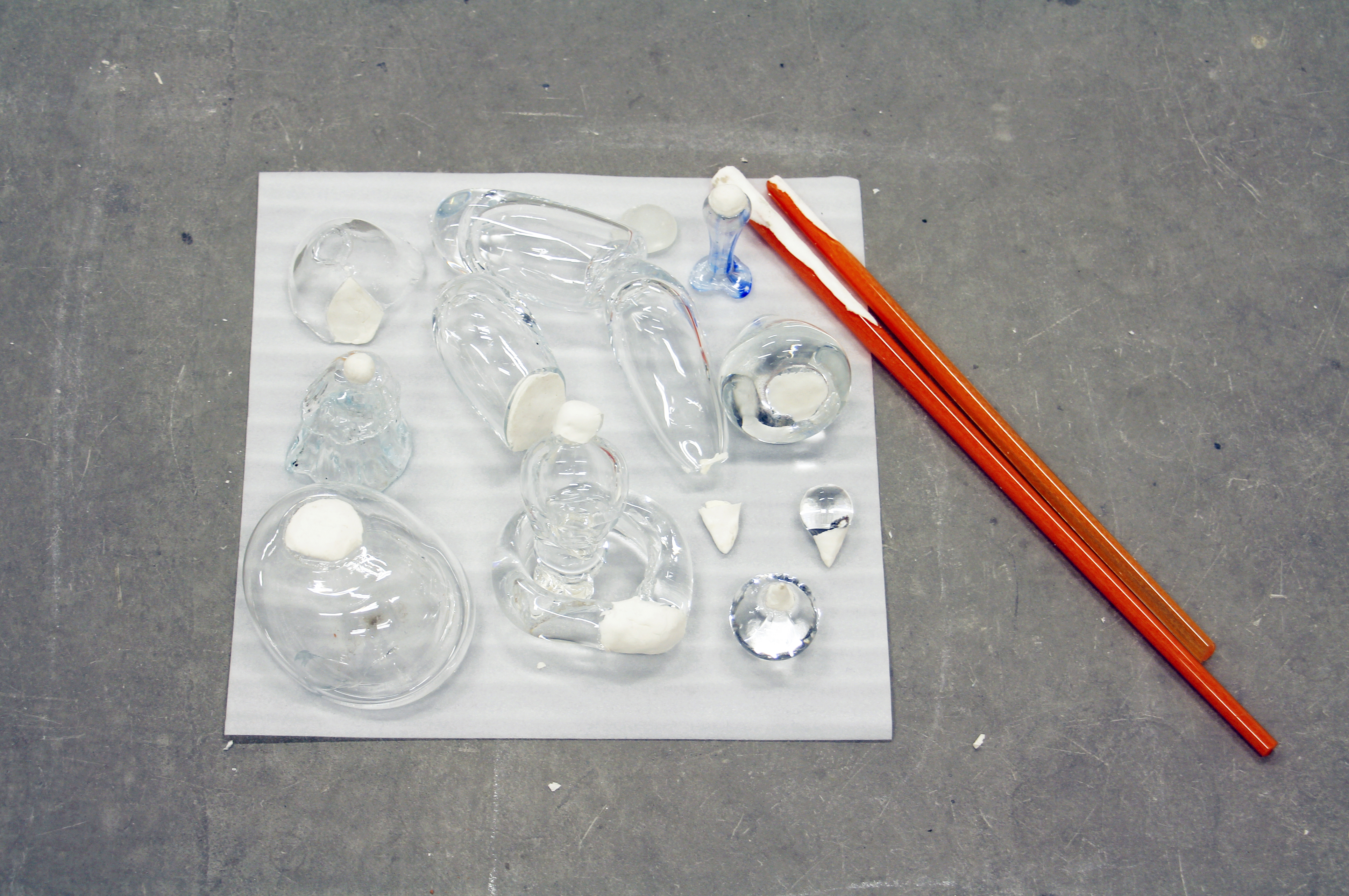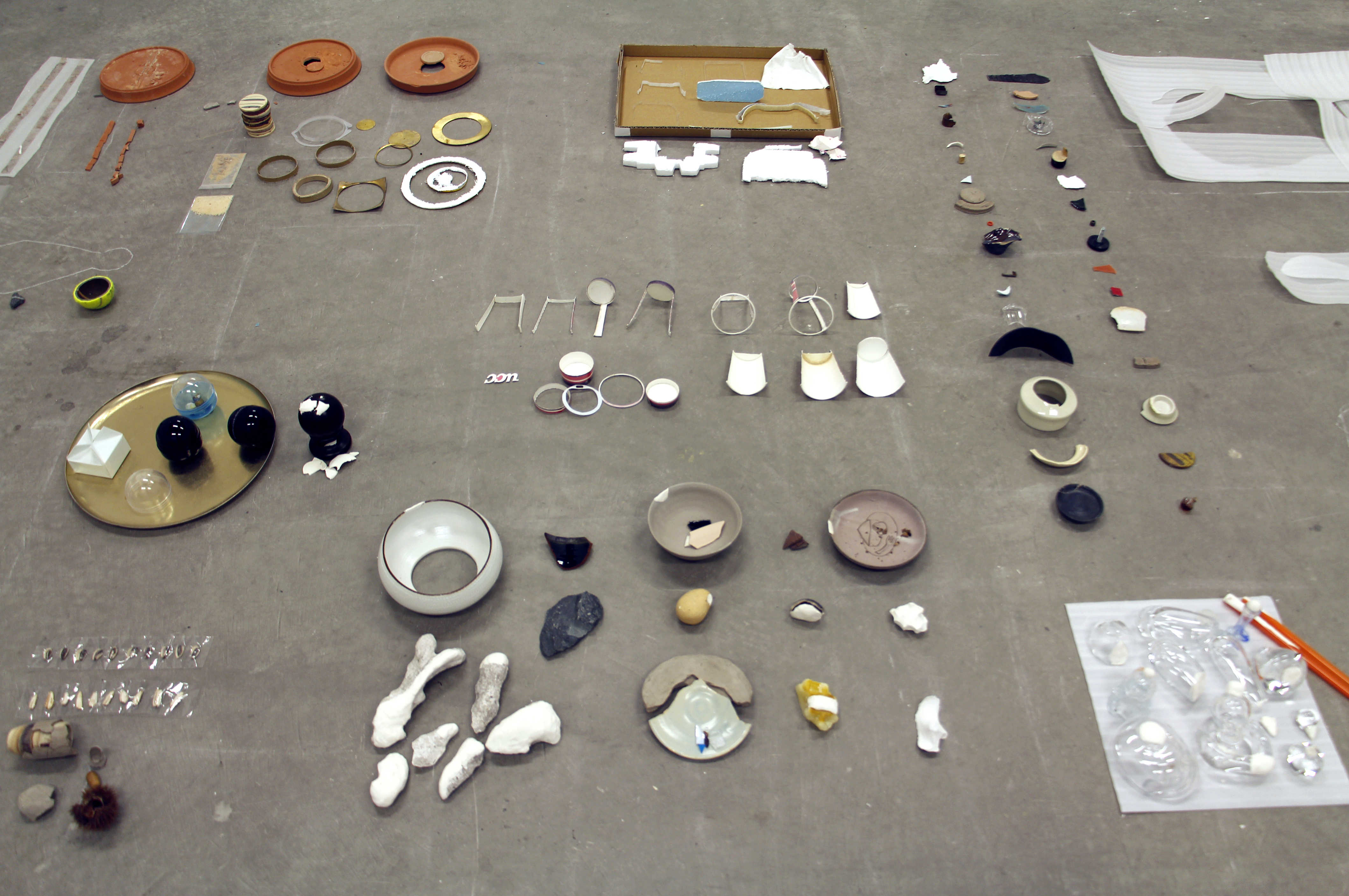 Matériaux divers - Janvier 2018 - Musashino Art University - Tokyo - JaponTraces plus petites ou plus légères de tous les objets de ma première exposition au Japon. Ainsi réduits, je peux les emporter avec moi.